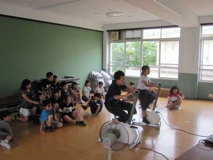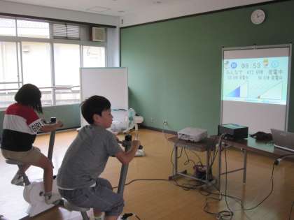 ワールドルームでは,自転車をこいでたくさん電気を発電させました。頑張って子どもたちは自転車をこぎました。