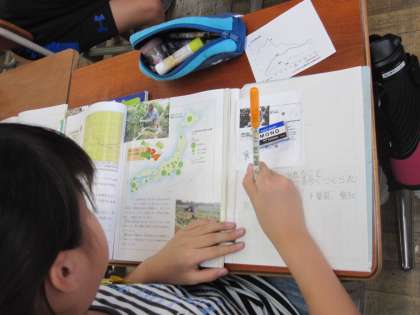 教科書などの資料から,野菜の産地について調べたことをノートに書き留めていきました。