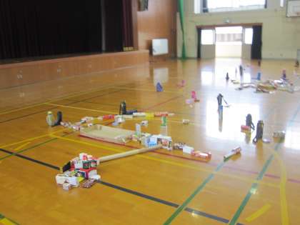 子どもたちは,お城の様子や建物,動物などを想像して,形を組み合わせて作っていました。