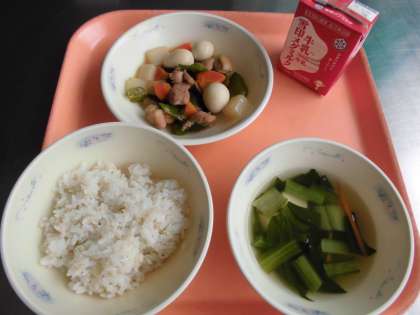 子どもたちから、「『プリプリ中華いため』は、ピーマンが入っていて、美味しかったです。『とうふと青菜のスープ』は、人参・豆腐が入っていて、美味しかったです。」と、感想をくれました。