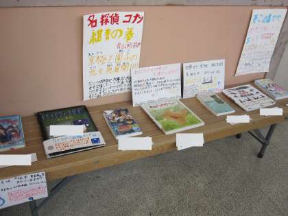 国語科「本の魅力を紹介しよう」で学習して作ったポスターなどを廊下に掲示しています。