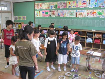 2年生教室では,わなげにチャレンジをしていました。なかなか輪っかを入れるのは難しそうでした。