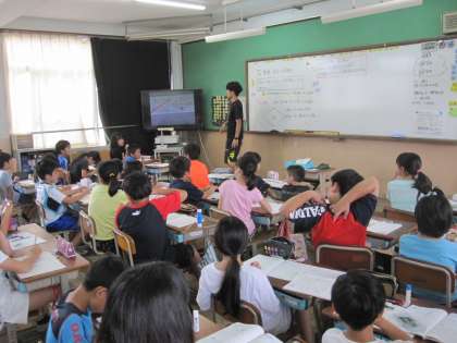 平行四辺形とひし形の対角線についての性質を調べました。グループで話したり,自分で線を引いたりしながら見付けました。
