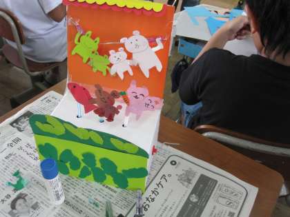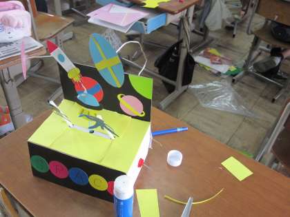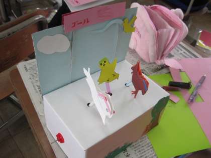 かけっこの様子が伝わってくるものや,宇宙の様子など,楽しい仕かけのある作品ができてきています。