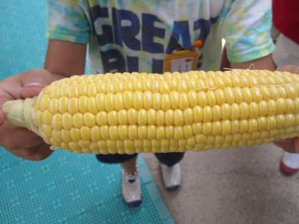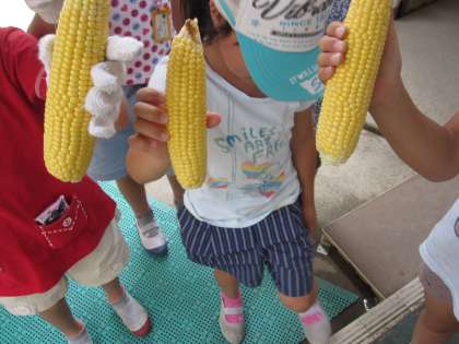 穫れたトウモロコシはつやつやで,とても大きかったです。