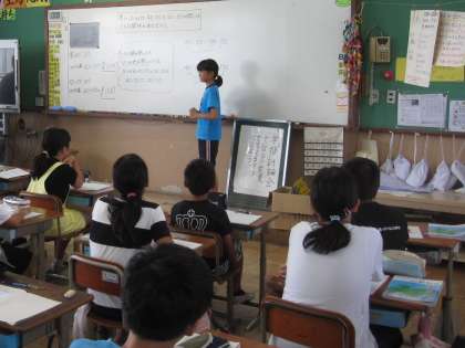 等しい比について学習しました。比の値や,等しい比の関係について,考えを伝え合いました。