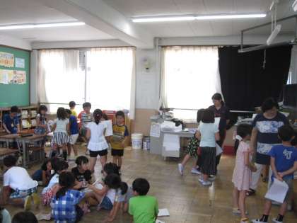 夏休みの水やり当番をみんなで話し合って決めました。