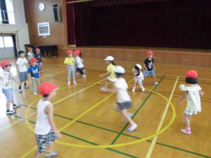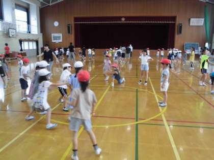 今日は1年生と3組さんのドッチボール大会の日です。体育館でころがしドッチボールをしました。楽しそうに投げたり逃げたりしていました。