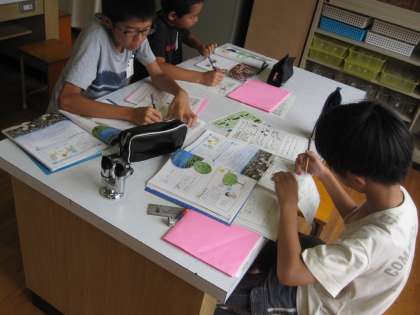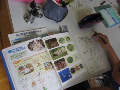 生物どうしの関わりを学習し,これまでの学習を振り返るためにプリントに取り組みました。教科書やノートを振り返って問題を解いていました。