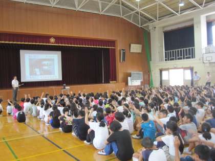 校長先生の3つの「あ」『あいさつ』『あきらめない』『あんぜん』を大切に夏休みを過ごしてほしいと思います。