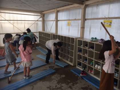 大掃除を行いました。1学期に使用してきた上靴の棚など,学校のすみずみまで,しっかりときれいにしていました。