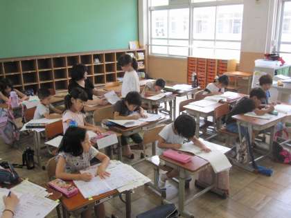 宿題のプリントなどで,難しいところなどは担任と一緒に考えながら取り組んでいました。