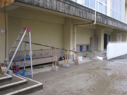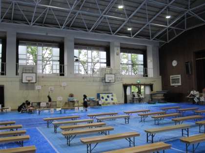 北梅津自治会連合会主催の 夏のふれあいまつり の準備が本校で行われています。