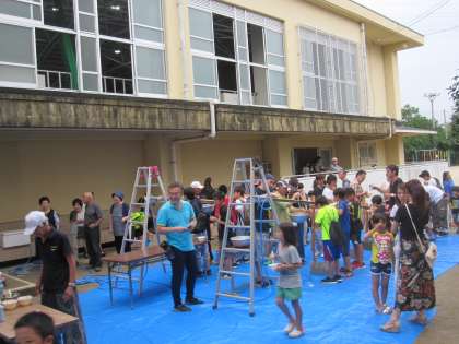 雨も上がり,体育館の外では,おやじの会による流しそうめんをみなさん楽しまれていました。
