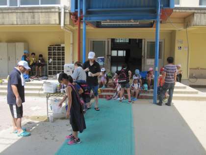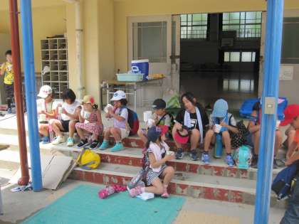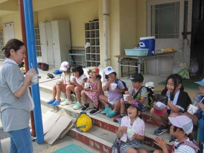 最後に,子どもたちはかき氷をいただきました。いろんな味の中でも,メロン味が一番人気のようでした。子どもたちは大満足のようでした。