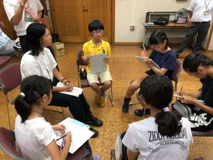 他校の子どもたちとともに,グループでいじめについて話し合いをしてます。