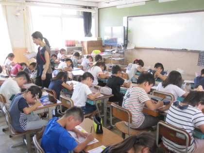 学級で,夏休みのできごとを伝えたり,思い出を発表したりしていました。また,初日からプリントで学習を振り返ったり,2学期にがんばることをカードに書いたりしていました。