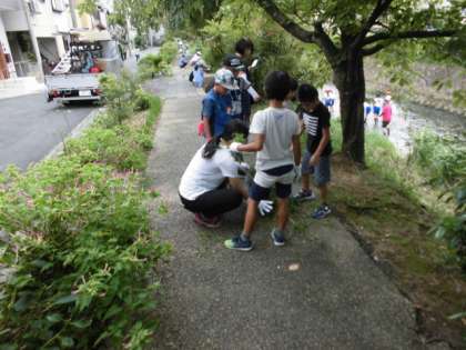 今日は全校で清掃活動の日です。校庭と有栖川を手分けしてきれいにしました。たくさんのごみをみんなで拾ったり草を抜いたりしました。これからもみんなの学校をきれいにしていきたいです。