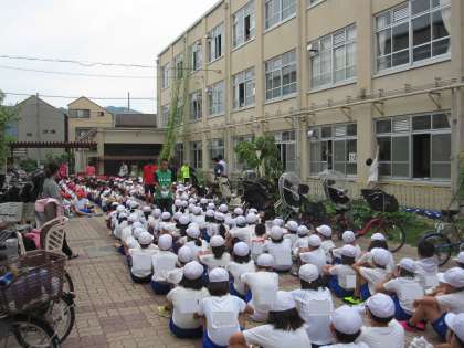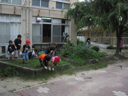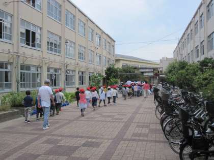 全校児童で,有栖川と校内を清掃しました。今日の清掃活動は,保護者の方もたくさん参加していただいての清掃活動になりました。