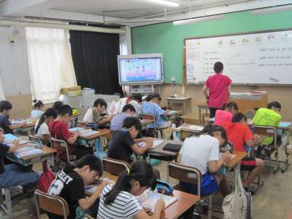 何時にしたのかを尋ねる英語表現に慣れ親しみました。教科書を使って,つづりにも慣れ親しみました。