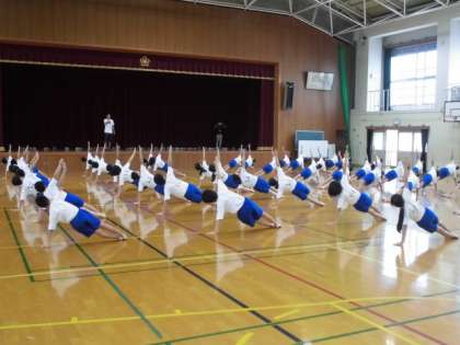 6年生は運動会に向けて,練習が始まりました。体を支える力やバランスをとる力など自分の体力を伸ばしながら進めていきます。表情から真剣に取り組む様子が伝わり,とても嬉しいです。