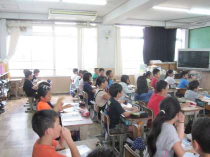 布で作られたものの良さについて,学習しました。普段よく手にするタオルやハンカチなどを手に取りながら,改めてその肌触りなどについて考えました。