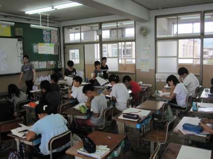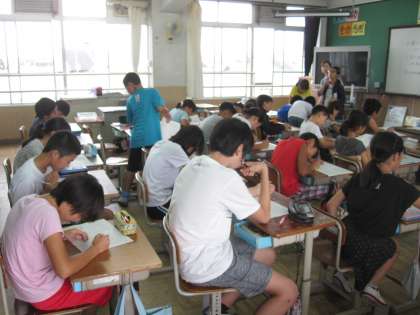 プリントを使って,1学期までの学習の振り返りをしました。子どもたちは,集中してプリントに取り組んでいました。