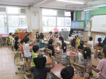 20までの数の復習をしました。クラスで20までの数をリレーしたり,数の大きさを比べたりして学習を振り返りました。