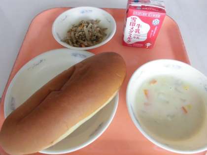 子どもたちから、「『コーンのクリームシュー』は、コーンの甘味と肉の味が美味しかったです。『こぼうのソテー』は、ごぼうにまぐろの味がしみていて、とっても美味しかったです。」と、感想をくれました。