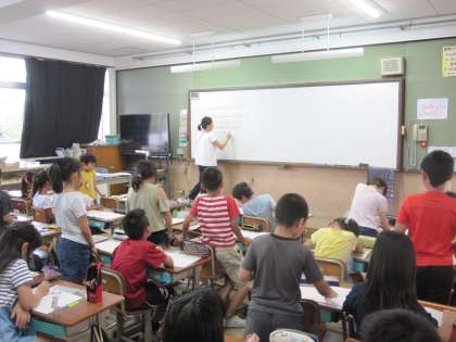 梅津北小学校のまわりにどんなお店があるのかを交流し,どのようなところにどんなものがあるかを学習していきます。