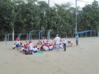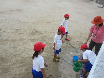 生活科の水遊びの学習をしました。砂場で,水を使って,いろいろな造形遊びをしました。