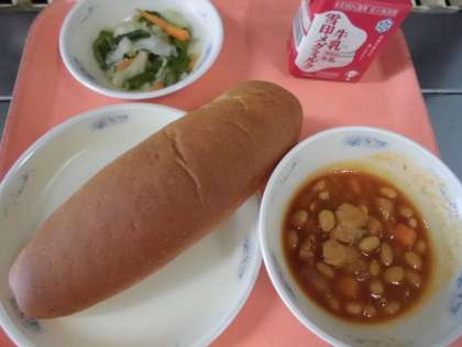 子どもたちから、「『大豆と鶏肉のトマト煮』は、鶏肉がやわらかく、まろやかで美味しかったです。『アスパラガスのソテー』は、野菜がシャキシャキしていて、美味しかったです。」と、感想をくれました。