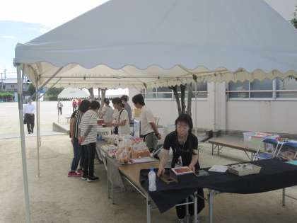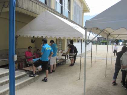 体育館の周りでは,模擬店も準備されています。体育館にたくさんの人が集まりだしました。
