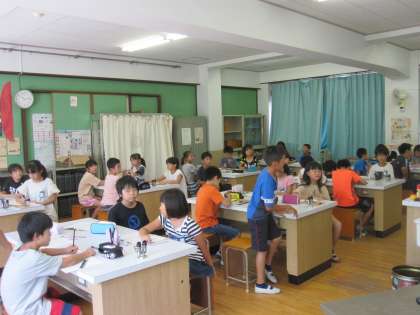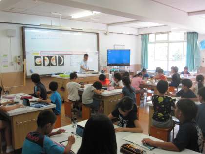 どのような形の月が,いつ,どの方位で,どれくらいの高さで見えるのかを調べるための方法について,学習をしました。教室に実際に月の写真を貼って,どのように記録するのかを学習しました。