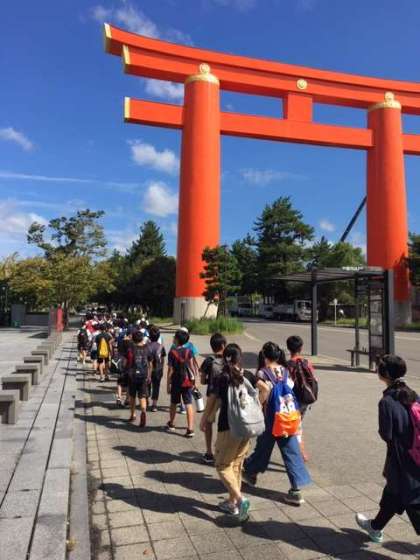 8時30分に学校を出発して,ロームシアターに向かいました。平安神宮前を通り,到着しました。