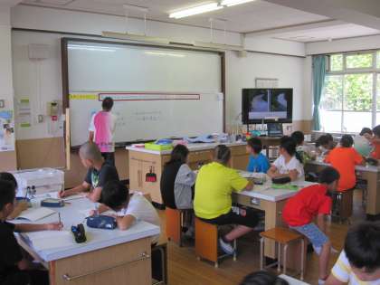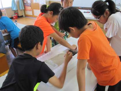 流れる水にはどのようなはたらきがあるのか,実験を通して学習をしています。グループで実験をしながら,どのように土が削れていくのかを考えました。