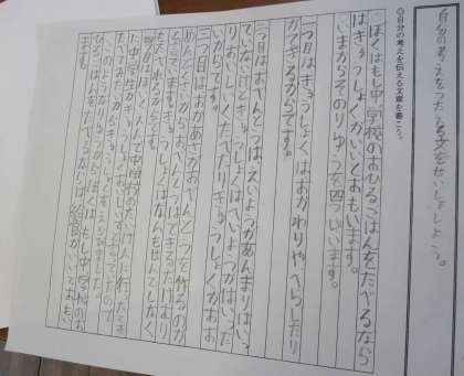 自分の考えを意見文として書きました。相手に自分の考えが伝わる文章の書き方を学習しました。