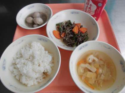 今日は、行事献立『月見』です。「中秋の名月」といい、月がとてもきれいに見えます。里いもがたくさんとれる時期なので『いも名月』ともいわれることから、給食では「里いもの煮付け」を月見の献立に取りいれられています。
