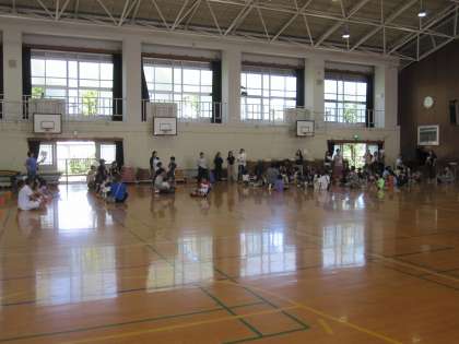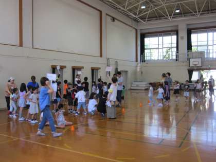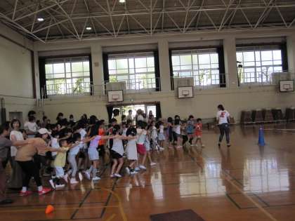 グループに分かれ,チームで協力するゲームをしたり,○×クイズをしたりして,お家の人と子どもたちで楽しみました。