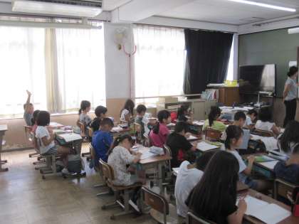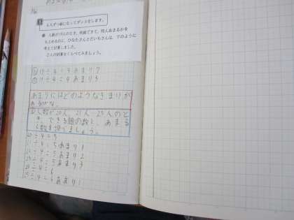 あまりのあるわり算の学習をしました。あまりがどのようになるのかを自分で考えてから,学級で話し合いました。