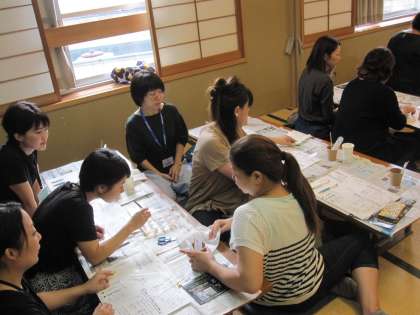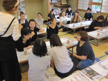 様々な色の花を組み合わせ,花の数も考えながら,みなさん,制作をされていました。