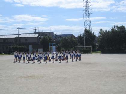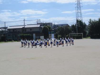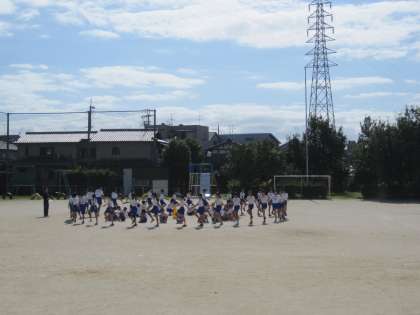 運動場で,位置と動きの確認をしました。そろった足の動き,方向転換ができました。