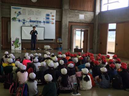 蹴上浄水場の説明を聞いて,その後浄水場を見学します。