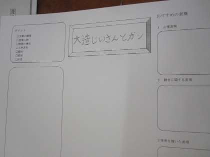 大造じいさんとガンを読んで,自分のおすすめのところを書いていきます。物語の魅力が伝わるように,どのように,何を書くのかを考えて,1枚にまとめていきます。