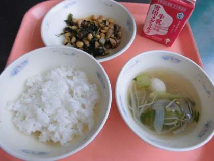 子どもたちから、「『肉みそいため』は、肉や大豆に味噌の味がきいていて、美味しかったです。『はるさめスープ』は、玉ねぎも軟らかくて、はるさめが、ちゅるちゅるしていて、うずら卵も入っていて、美味しかったです。」と、感想をくれました。