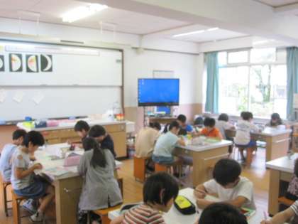 映像を見て,月の動きを復習しました。その後,プリントで学習した内容を振り返りました。