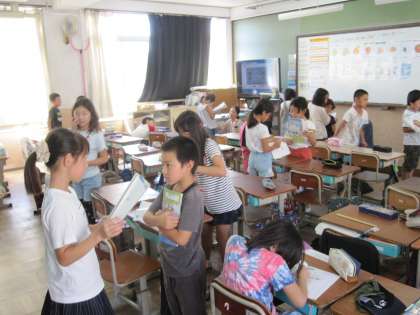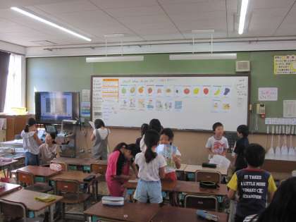 好きなものを尋ねたり,答えたりする英語表現を学習しました。友達とやり取りを通して,"What do you like?"をたくさん話して,英語に慣れ親しみました。
