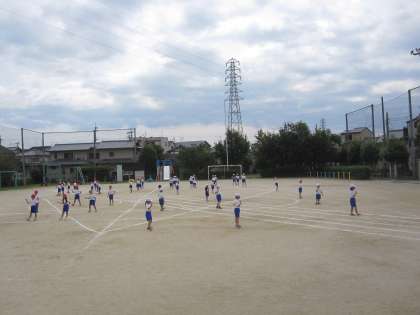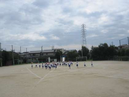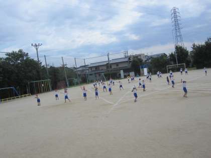 運動会に向けて,運動場でダンスの練習をしました。運動場での位置を確かめました。
