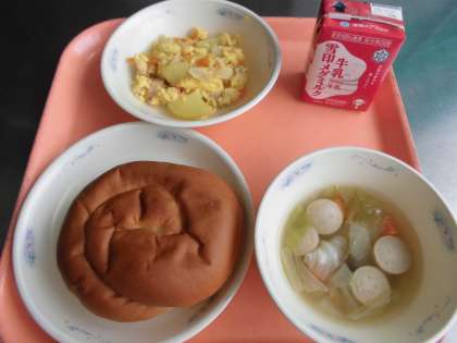 子どもたちから、「『変わりいり卵』は、チキンスープの味が、卵に浸み込んでいて、とっても美味しかったです。『ソーセージと野菜のスープ煮』は、ソーセージの食感と野菜の甘味が良く、美味しかったです。おかわりして食べました。」と、感想をくれました。