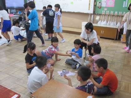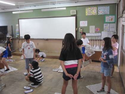 教室で,子どもたちで工夫しながら,トランプで楽しんだり,新聞乗りで遊んだりしていました。